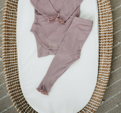 Zart, weich und wunderbar bequem: Unsere Merinowoll Leggings in feinem Ripp sitzt flexibel, hält warm ohne Hitzestau und verzaubert mit einer Rüschensaum Kante am Bein. Schön kombiniert mit unserem passenden Shirt oder dem Body mit Rüschensaum.